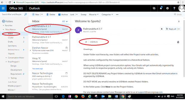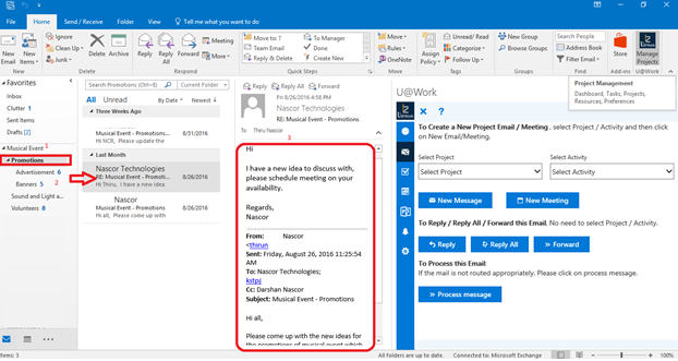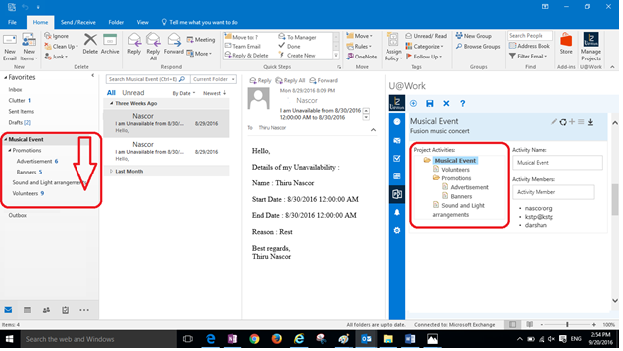 5. As recipient(s) the email received by team member(s), is routed automatically to the respective Project/Activity folders present in the recipient mailbox.