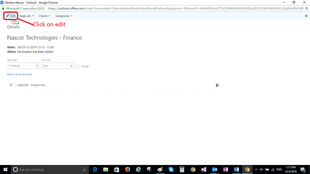 Select the meeting to edit the details of the newly created meeting and send it to team members, who are part of this Project.