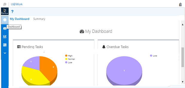 Dashboard tabs 'My Dashboard', 'Project Dashboard', 'Summary' provides work item details as Team Member and as Manager (Owner). Summary provides a tabular view. Project Dashboard will be visible for Owner or Custodian, giving details for the work assigment being managed and responsible for the same.