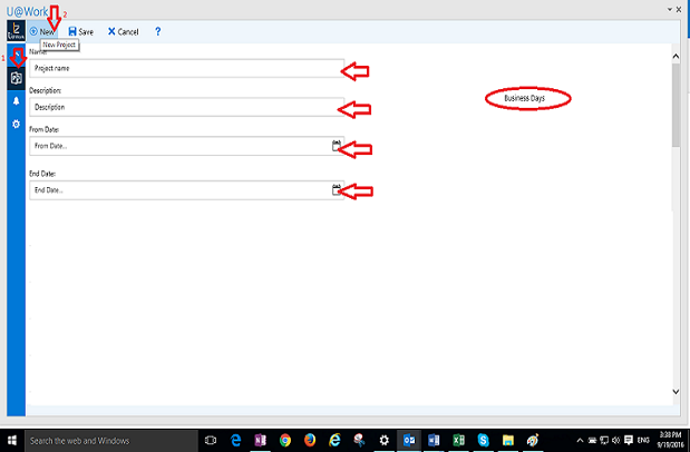 Step 3: Fill the fields Project name, Description, From Date and End Date and click on save.