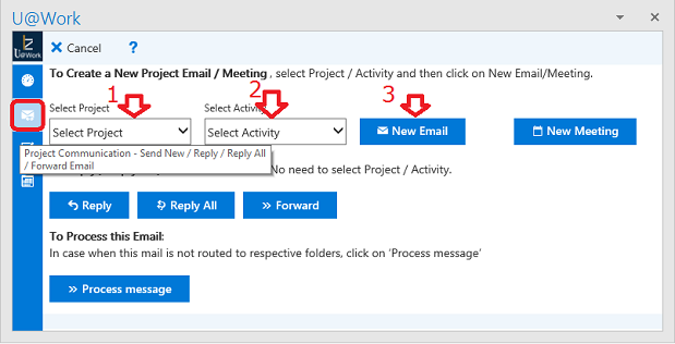 2. While performing reply/reply all and forward actions, user need not select project or activities.