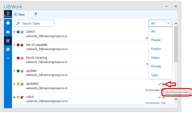 2. Search the type of tasks assigned by entering the task name or user name (Email ID)