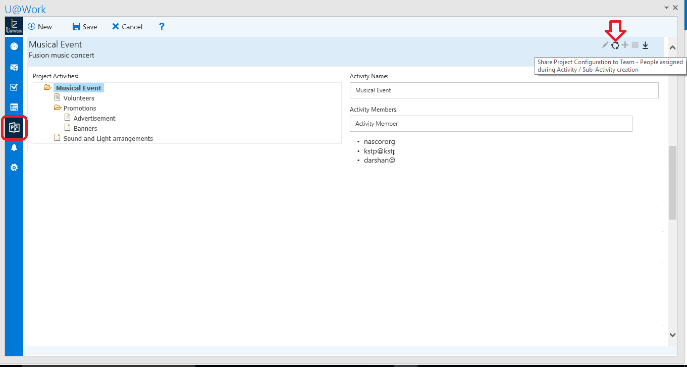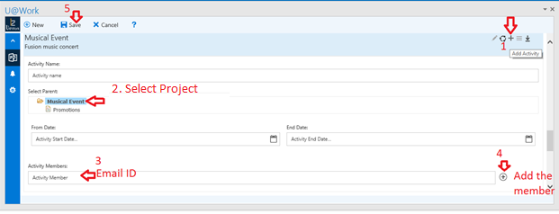 As a Project Manager, while creating work structure, assigns one or more activity as part of a Project to other U@Work users and shares the same, the other U@Work users assigned, will become team members for that particular project.