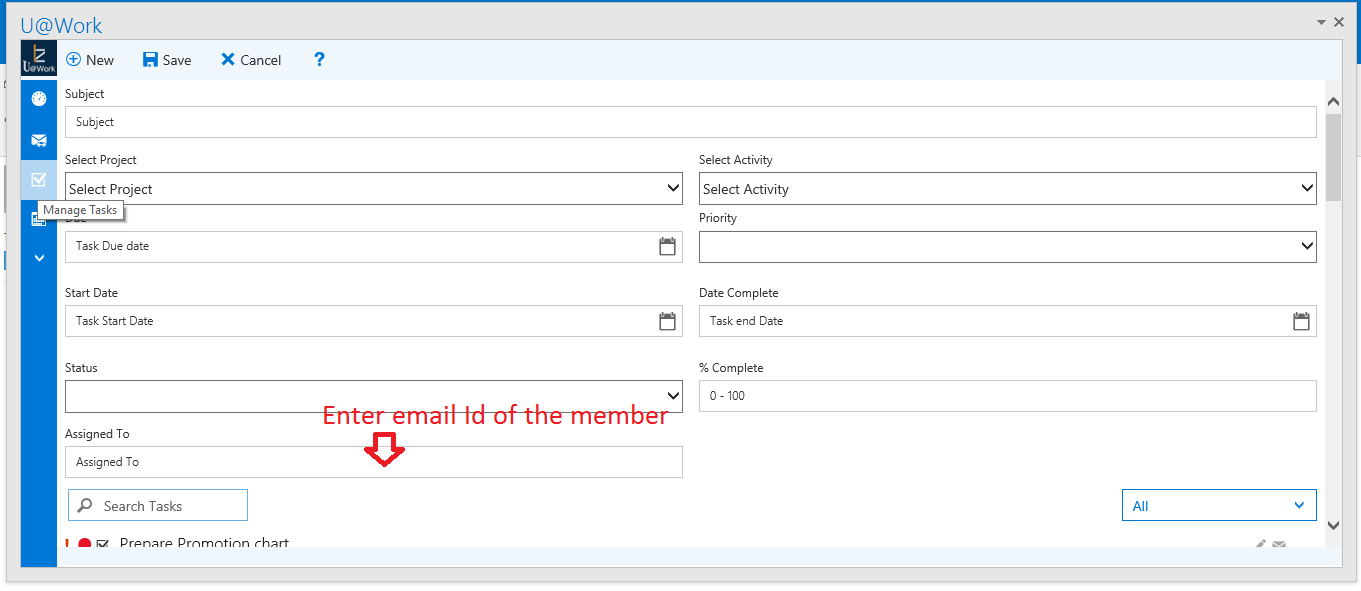 Fill required task details by selecting project/activity. Save & Send the task to the assigned Team member (Owner).On receipt of mail by Task Owner, it will be routed to the same, project/activity folder.-Task owner can update task progress status
